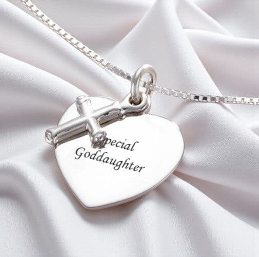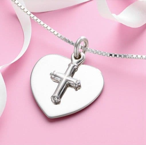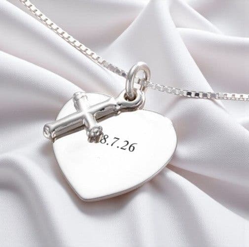 Sterling Silver Engraved Personalised Heart and Cross Necklace.