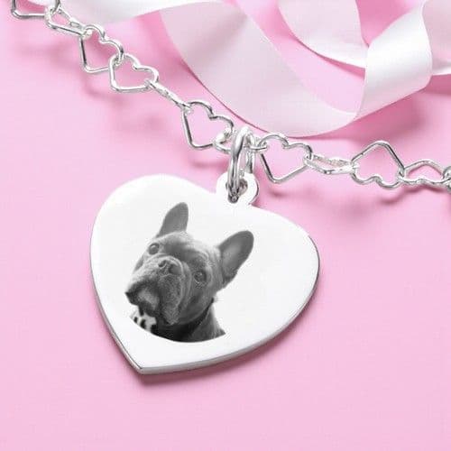Sterling Silver Heart Link Personalised Necklace with Photo Engraved.