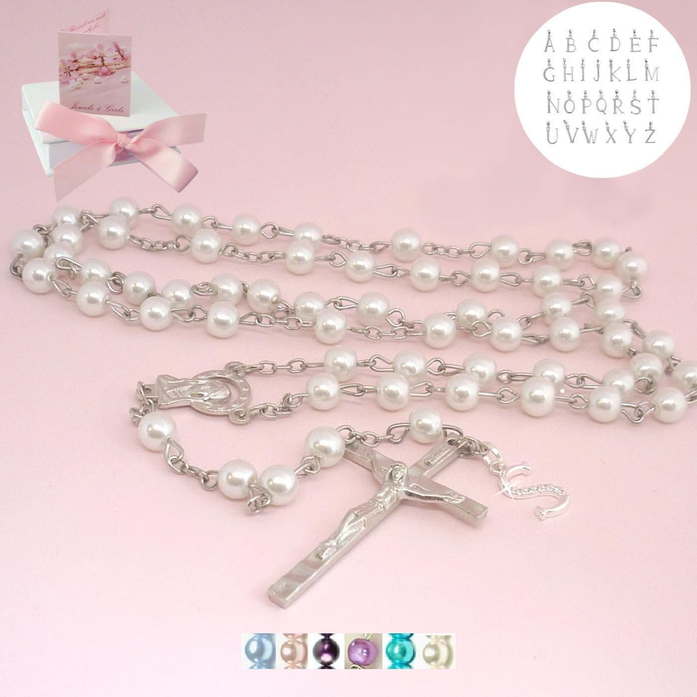 High Quality Pearl Rosary Beads with any Sterling Silver Initial Letter Charm.