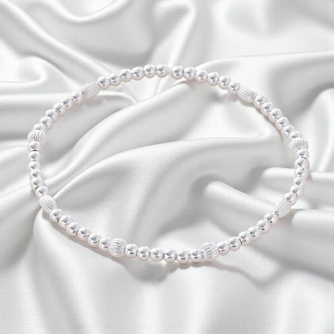 Stylish and contemporary. Easy to pull on. Ideal for stacking with other silver bead bracelets.