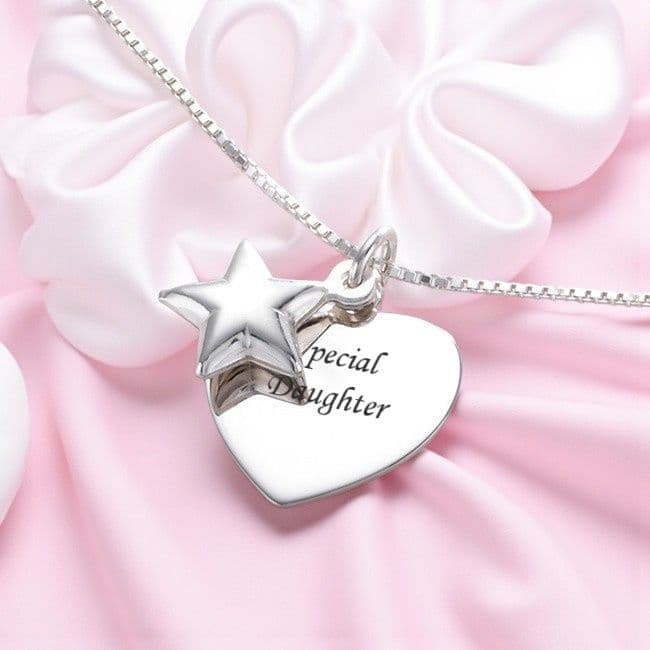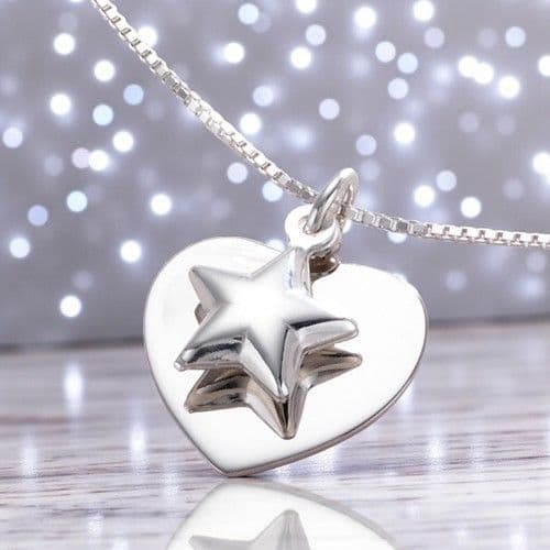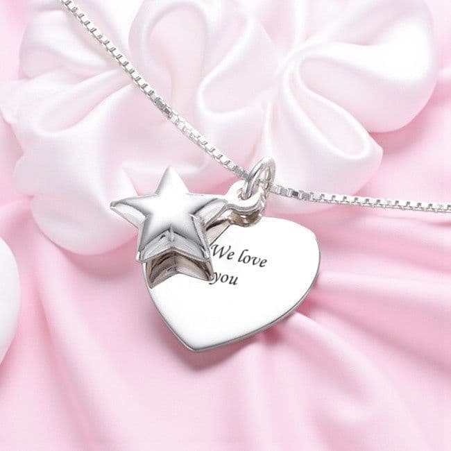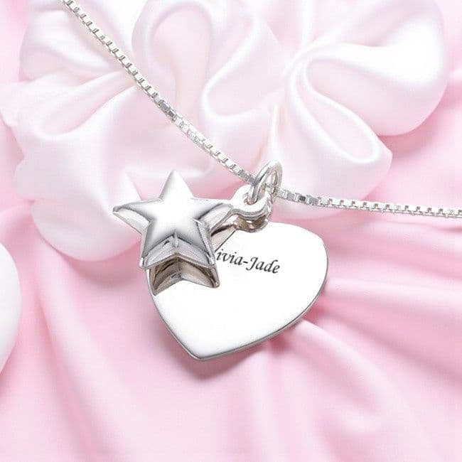 Sterling Silver Engraved Heart with Star Charm Personalised Necklace
