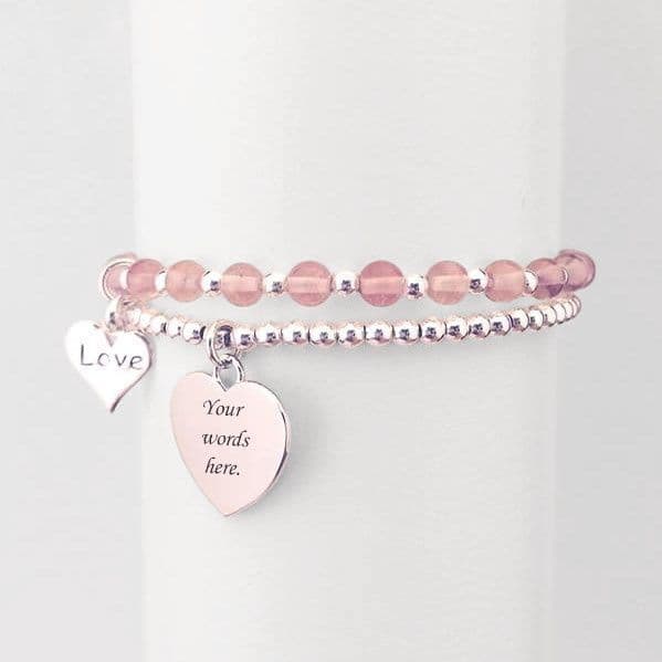 Two Stacking Bracelets with Silver Beads, Personalised Engraving, Gemstones & Charm Choice.